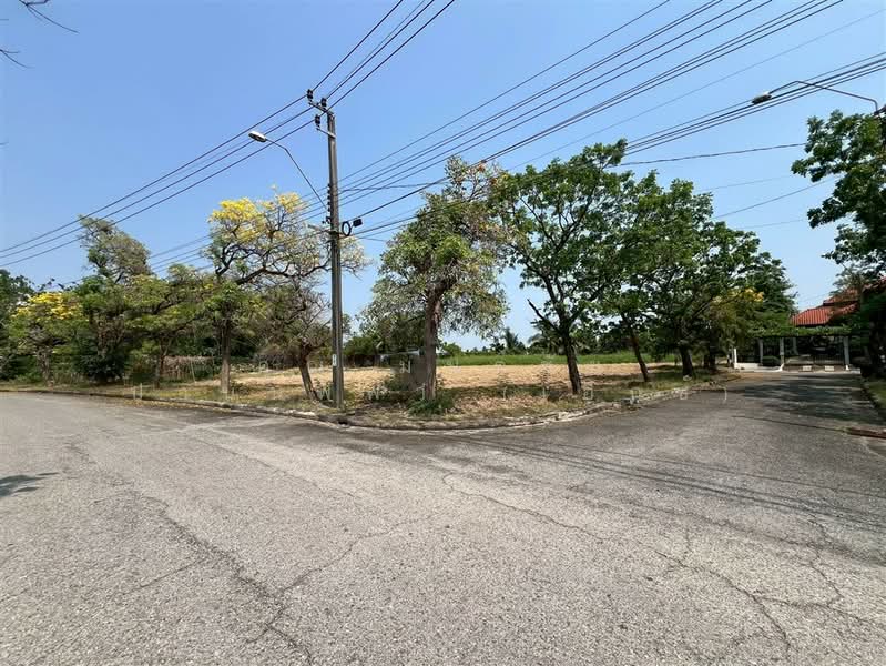 เป็นที่ดินเปล่าแปลงมุม ด้านหลังติดกำแพงรอบโครงการ บรรยากาศร่มรื่น มีเพื่อนบ้าน