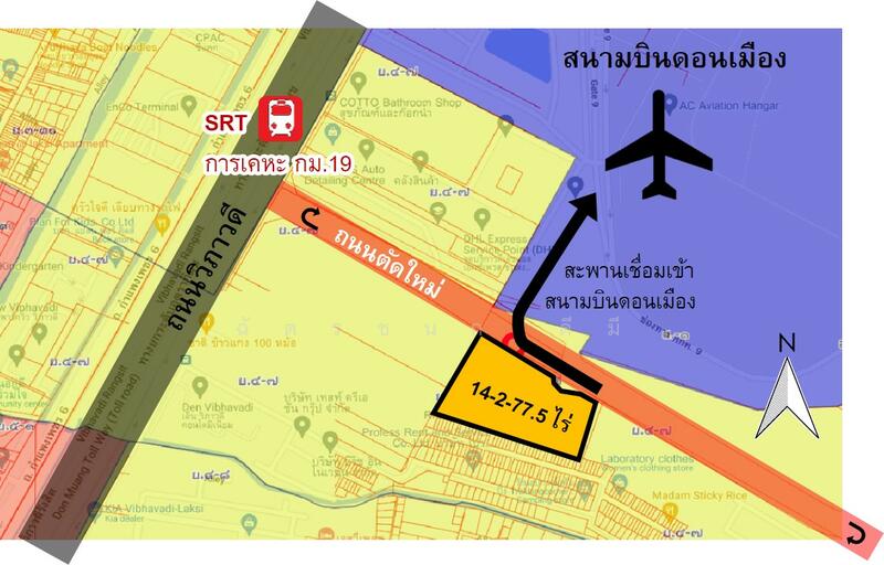 ขายที่ดิน 14-2-77.5 ไร่ ถนนเทพรักษ์ ตัดใหม่วิภาวดี-พหลโยธิน (สนามบินดอนเมือง)