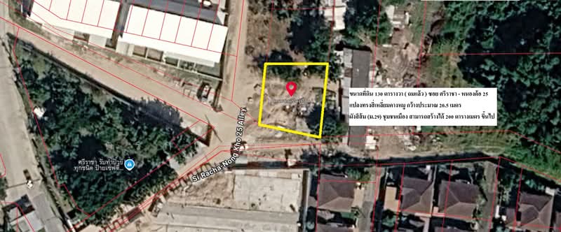 ที่ตั้ง : ที่ดิน 130 ตารางวา ซอยศรีราชา - หนองค้อ 25 ตำบลสุรศักดิ์ อำเภอศรีราชา จังหวัดชลบุรี