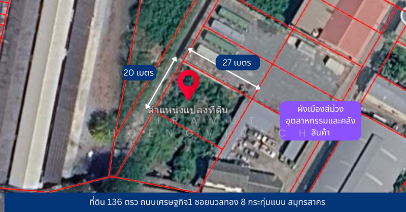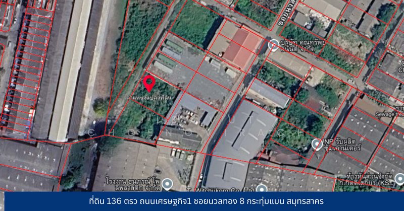 ที่ดิน 136 ตรว ถนนเศรษฐกิจ1 ซอยนวลทอง 8 กระทุ่มแบน สมุทรสาคร is located at ถนนเศรษฐกิจ1, Om Noi, Krathum Baen, Samut Sakhon Om Noi Krathum Baen Samut Sakhon.