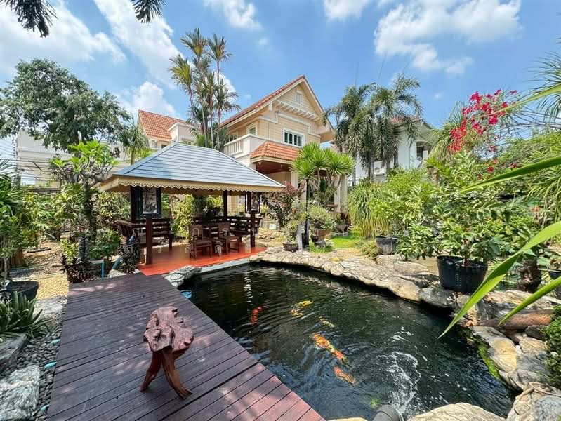 บ้านสวย สวนสไตล์รีสอร์ท หลังมุม พร้อมเฟอร์นิเจอร์ พื้นที่ใช้สอยประมาณ 350 ตารางเมตร 3 ห้องนอน 3 ห้องน้ำ 1 ห้องทำงาน 2 ห้องครัวแพนทรี่และครัวไทย 2 ห้องแม่บ้าน 1 ห้องน้ำแม่บ้าน , 2 ห้องเก็บของในบ้านและนอกบ้านขนาดใหญ่ บ้านสร้างสูงกว่าถนนโครงการ 1 เมตร ลงเสาเข็ม 24 เมตร บ้านหันหน้าทิศใต้และ รับแดดทิศตะวันออก พร้อมของแถมต่างๆเช่น