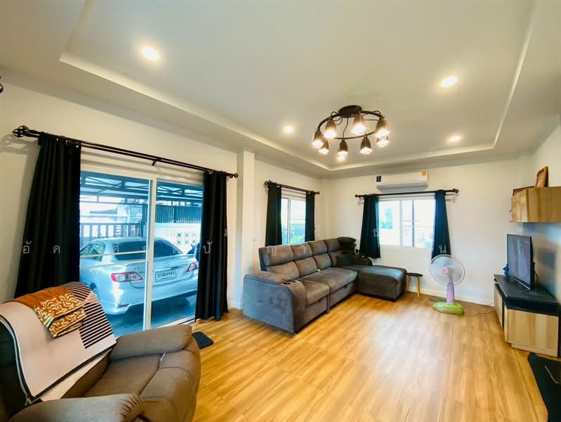 สูง 2 ชั้น 3 นอน 3 น้ำ 1 ครัว 1 ห้องรับประทานอาหาร มีที่จอดรถ 6 คัน แอร์ 4 ตัว มุ้งลวด ม่าน สนาม