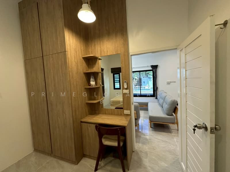 The villa is a beautiful and spacious home with 3 bedrooms and 2 bathrooms, perfect for a family or group of friends. As you enter the villa, you'll find a clean and well-maintained living room, complete with comfortable seating and plenty of natural light. The kitchen is built-in and fully equipped with everything you need to cook up a delicious meal. Adjacent to the kitchen is a lovely dining room with ample seating for everyone to enjoy a meal together. One of the highlights of the villa is the living pavilion, a covered outdoor space that's perfect for relaxing and enjoying the beautiful weather. The garden is also a great place to spend time outside, with plenty of space for the kids to run around and play. The villa's name, Piamsook, means "you will live happily in this nice place and location," and it certainly lives up to its name.