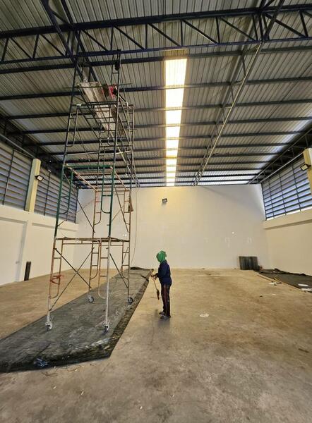 - Warehouse area: Large 15 times 15 meters, open space, machine or stockable