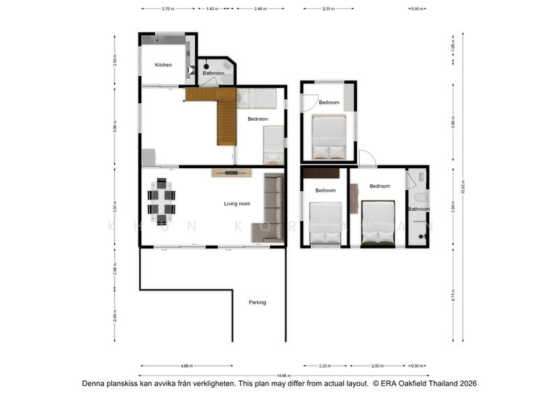 3 bedrooms and 2 bathrooms in good condition located close to a quiet beach and with no disturbance in Rayong province.