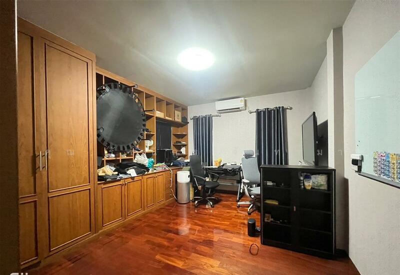4 คัน พื้นชั้นล่างปูกระเบื้อง มีห้องนอนผู้สูงอายุ เป็นพื้นลามิเนท ต่อเติมงานบิวท์อินตู้เสื้อผ้า ชั้นวางทีวี แยกสัดส่วนห้องอาหารและห้องรับแขก มีห้องแม่บ้านและห้องน้ำ หลังบ้านต่อเติมครัวไทย ชั้นบนปูด้วยลามิเนท เฟอร์นิเจอร์บิวท์อิน ชั้นล่างต่อเติมห้องทำงานและห้องเก็บของ ห้องน้ำกว้างขวาง มีพื้นที่สวนหน้าบ้าน ข้างบ้านมีต่อเติมเทอเรส ชั้นล่างปูกระเบื้อง จอดรถในบ้านได้ 4 คัน โครงการ L&H สาธารณูปโภคครบครันบรรยากาศดีมาก โครงการติดถนนรังสิตนครนายก บ้านไซด์ใหญ่