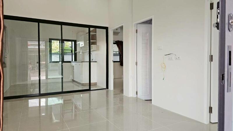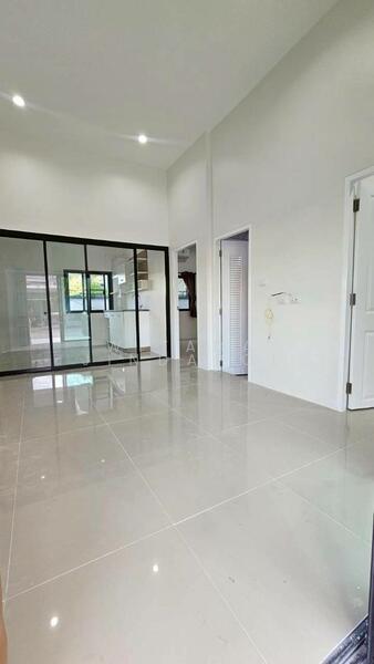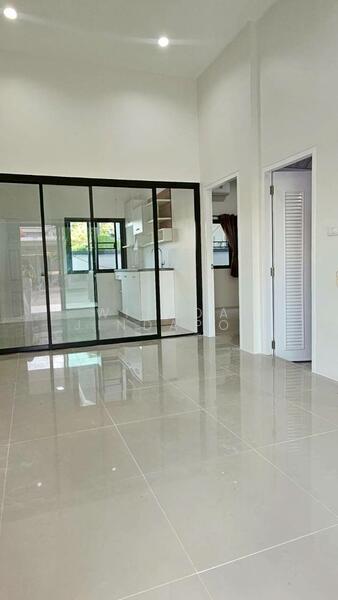 ประตูกระจกบานสไลด์ระหว่างครัวกับห้องนั่งเล่น