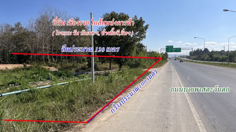 ที่ดิน จ.เชียงราย 5-2-0 ไร่ ติดถนนบายพาสตะวันตก ใกล้โรงแรมวันบัดเจทฯ