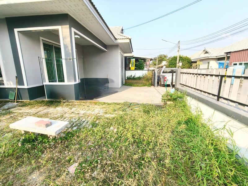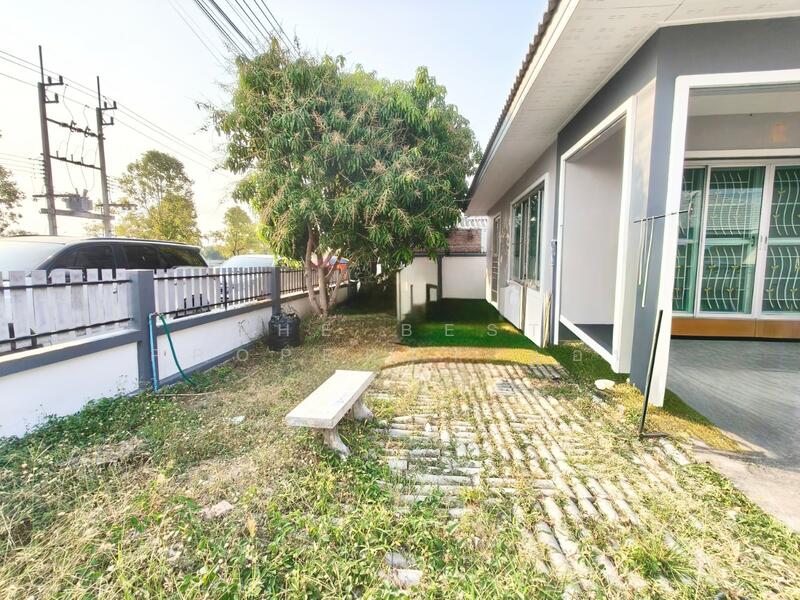 บ้านหลังมุม ติดถนนเส้นหลักในหมู่บ้าน มีพื้นที่รอบบ้านกว้างขวาง