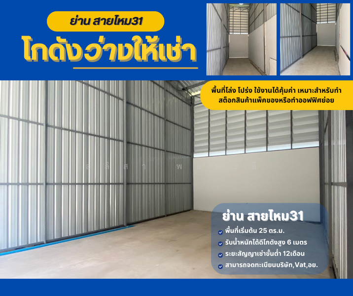 Warehouse for rent in saimai31 starting at about 5,000 baht/month