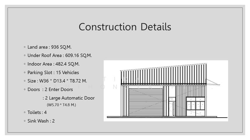 Usable area 609 sq m., indoor area 482.4 sq m., next to the road on 3 sides, surrounding the place. There is a main road approximately 20 m wide.