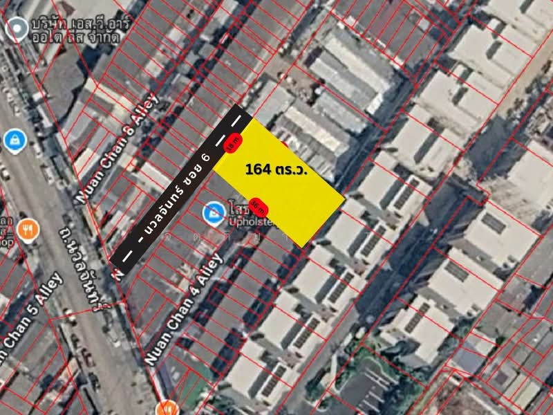 Land for sale in Bueng Kum, 164 sq.wa., Soi Nuanchan 6, near Kaset-Nawamin Road. Just 50 meters from the main road.