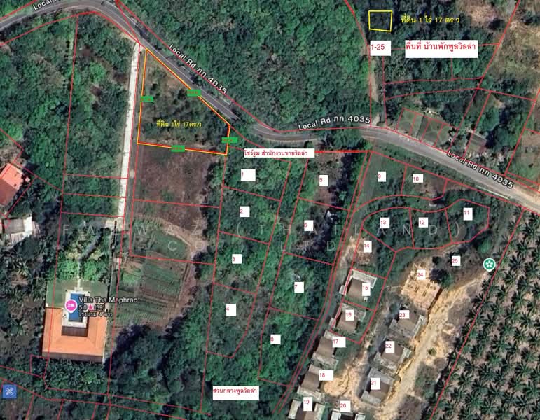 With a total size of 1 Rai 17 sq.wah (1,668 sqm), this plot offers a practical shape and direct road frontage with easy access via Rural Road Phuket 4035, making it ideal for immediate development or long-term land banking.