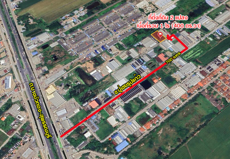 - Total land size: 1 Rai or 400 Sq.wah (Selling 2 adjacent plots combined, 200 Sq.wah each).