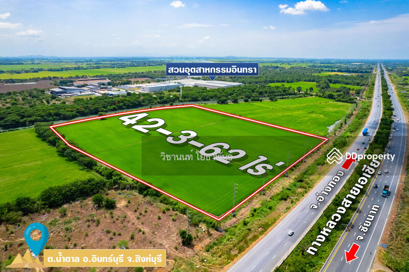 Land for sale near Asian hightway Width 220 meters, at Singburi.