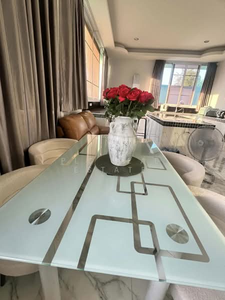 This house for rent is located in Na Jomtien Pattaya, set on a generous 2 rai land plot. Therefore, residents enjoy exceptional privacy and open green surroundings while remaining close to the beach and Sukhumvit Road. Moreover, the location allows convenient access to restaurants, cafés, and key transport routes. As a result, this residence suits tenants who value space and peaceful coastal living.