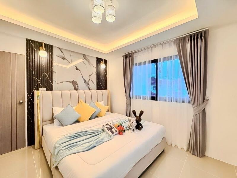 Conveniently located near Sukhumvit Road, making it easy to travel to central Pattaya, Jomtien Beach, and major shopping malls such as Tesco Lotus and Big C. The surrounding area has local markets, restaurants, cafes, and international schools such as Tara Pattana and Phoenix Wittaya. There are also several gyms and recreational facilities nearby. With easy access to public transportation and main roads, this location is ideal for families or individuals looking for a quiet residential area with nearby urban conveniences.