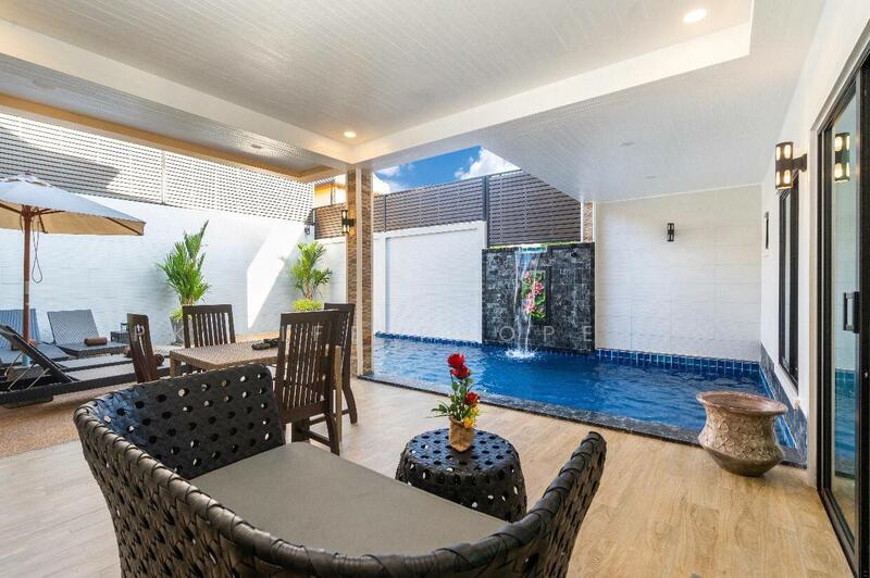 2R0100 This pool villa at Cheng Talay 3 bedroom 4 bathroom 1 swimming 150,000/month have Fully furnished total living space 250 sq.m and There’s secure parking for 1 cars. this house offers the perfect environment for a dream waterfront The open-plan living area invites impromptu gatherings and peaceful relaxation.