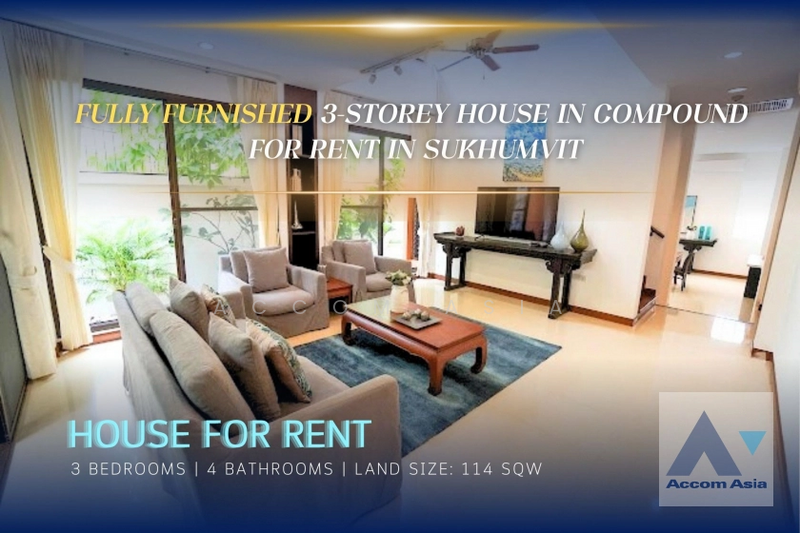 Fully Furnished 3-Storey House in Compound for Rent in Sukhumvit, near BTS Phrom Phong 1***** )