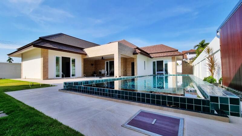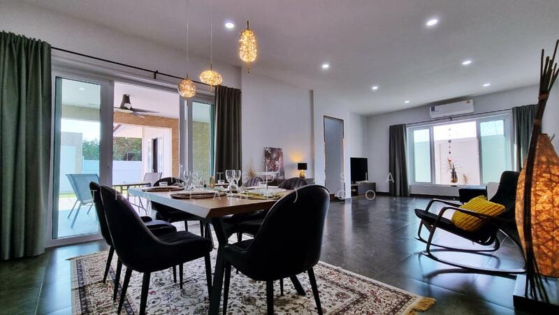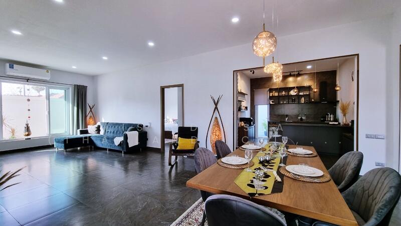 3 Bedrooms 4 Bathrooms House for Sale in Huay Yai. Offering 728 Sqm of land plot size, 285 Sqm of useable area. The property is fully furnished, European kitchen, a dining area, open plan living area, en-suite bathroom with bath tub.