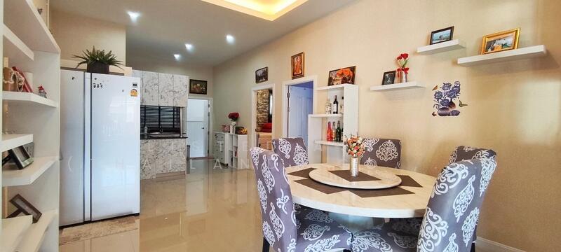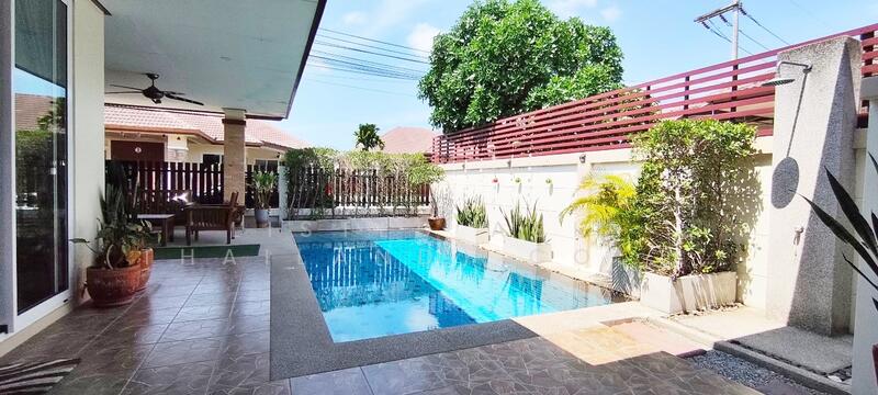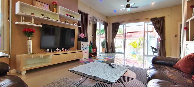 3 Bedrooms Pool Villa in Huay Yai - Pattaya for Sale – This 3-bedroom, 2-bathroom pool villa in Huay Yai - Pattaya sits on a 324.4 sqm land plot with a 200 sqm living area, offering a spacious and comfortable home. The living area features a comfortable sofa set, TV, and dining table, creating a welcoming space for relaxation and gatherings. The villa includes a fully equipped European kitchen and an outdoor Thai kitchen for added convenience. The master bedroom boasts a walk-in closet, en-suite bathroom, and a pool view, adding a touch of luxury to everyday living. The property also includes a small garden, providing a peaceful outdoor space.