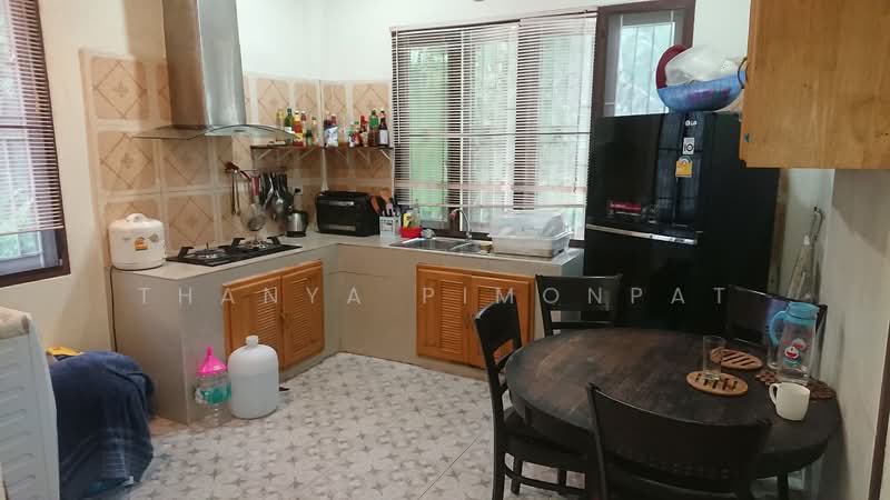Set on two adjoining land plots totaling 512 sq.m., each with its own Chanote title, the property offers ample outdoor space and flexibility for future expansion or a private garden retreat. The villa itself spans 100 sq.m., featuring an inviting open-plan layout with a fully fitted electric and gas kitchen, spacious living area, and bright interiors that can easily be refreshed with a simple coat of paint.