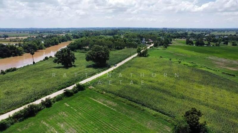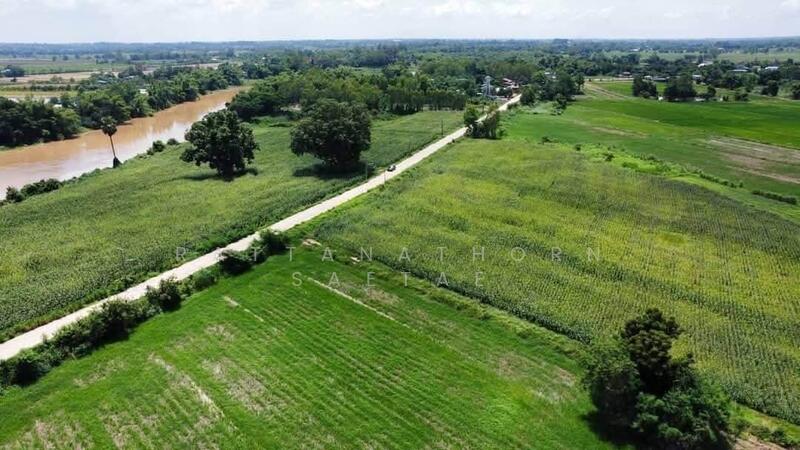 Current PSM at 36.5 rai in Phitsanulok, ~350m Yom River frontage, Concrete public road (~7m wide) is about ฿593 / sqm.