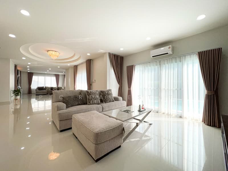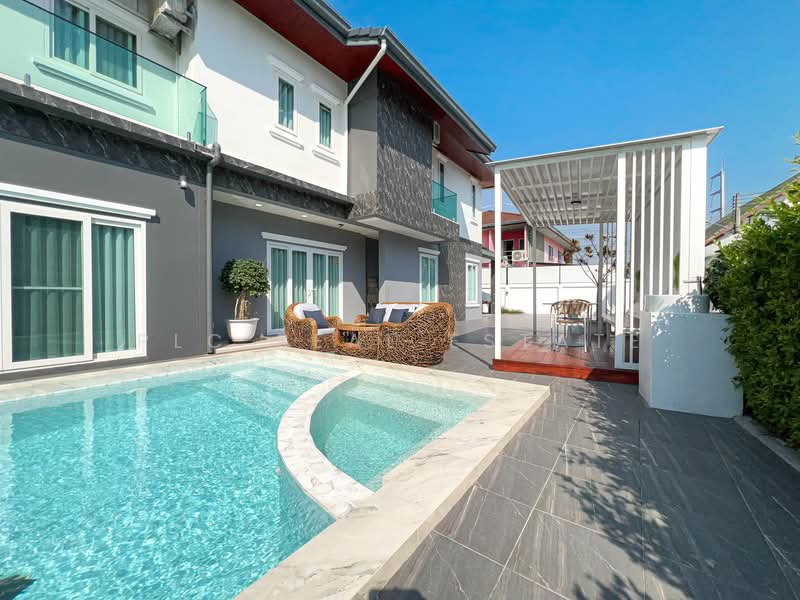 The villa sits on 131 sq.wah (524 sq.m) of land and provides 450 sq.m of usable space. In addition, the layout includes 4 bedrooms, 4 bathrooms, and 1 multipurpose room, which supports flexible family living. Furthermore, the home features both a Thai kitchen and a European kitchen for practical daily use and entertaining. The private 4×10 meter saltwater swimming pool enhances outdoor relaxation, while built-in furniture throughout allows immediate move-in. Consequently, this spacious residence offers comfort, functionality, and long-term value with no common area fees.