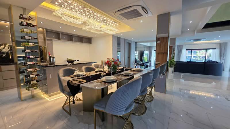 The property is a 2-storey villa featuring 4 spacious bedrooms and 5 bathrooms. It sits on a large land plot of 184 Sq.wah, providing generous outdoor space and privacy. In addition, the home includes a grand living hall with an open layout that enhances natural light and airflow. Therefore, it creates a bright and comfortable environment for both family living and entertaining.