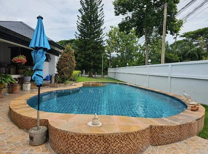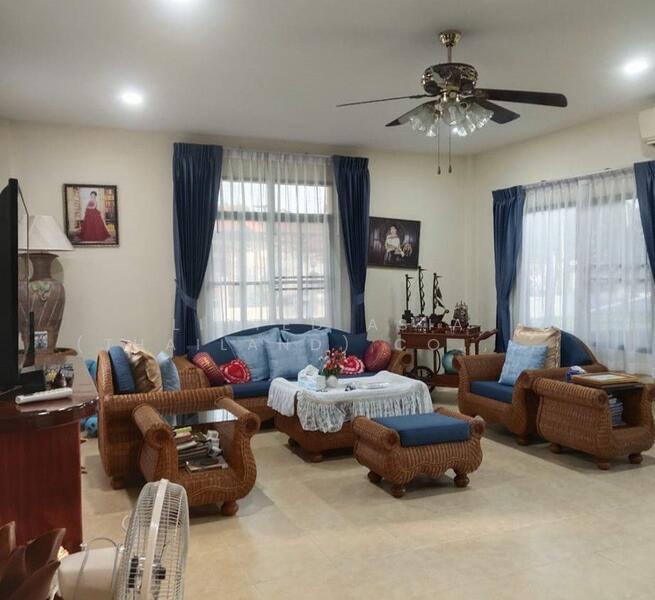 Available for transfer Thai name/Thai Company The property sits on a land plot of 1,600 sqm.- with an approximate usable area of 340 sqm. The house comes fully furnished and features an open-plan living area, dining table, sofa, kitchen, and a spacious garden.