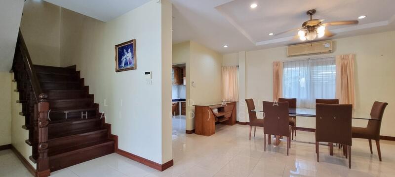 4 Bedrooms House in North Pattaya for Sale – This 4-bedroom, 3-bathroom house in North Pattaya offers a generous 296 sqm land plot and approximately 320 sqm of usable space. The house is fully furnished, with a spacious living area featuring a comfortable sofa set, TV, and dining table, creating a perfect space for relaxation and entertaining. The villa includes a built-in European kitchen, ideal for cooking and entertaining guests. The master bedroom comes with a built-in wardrobe, ensuring ample storage space, while an additional office area provides a functional space for work or study. The property also features a covered car park and garden, perfect for enjoying the outdoors in a private and peaceful setting. Located in North Pattaya, this home offers easy access to local amenities, shopping centers, schools, restaurants, and Pattaya’s beaches, making it a great choice for families or those seeking a spacious and convenient home.