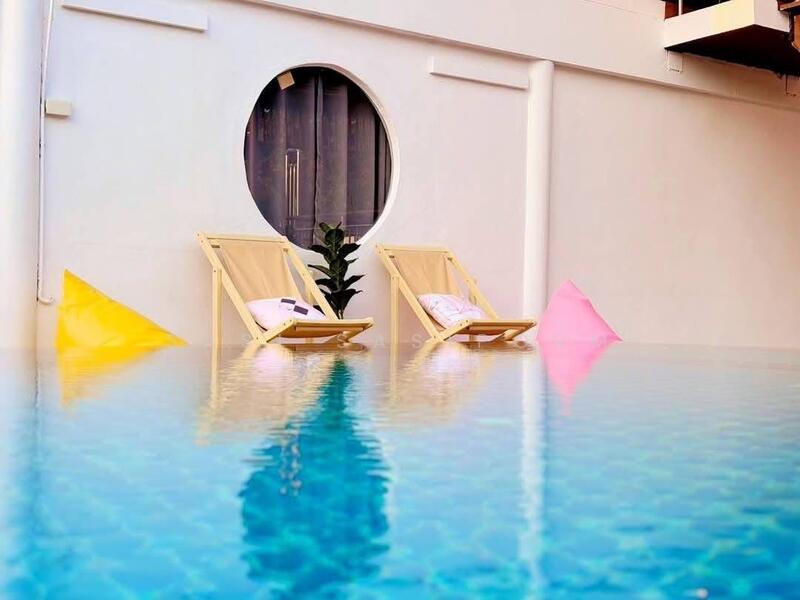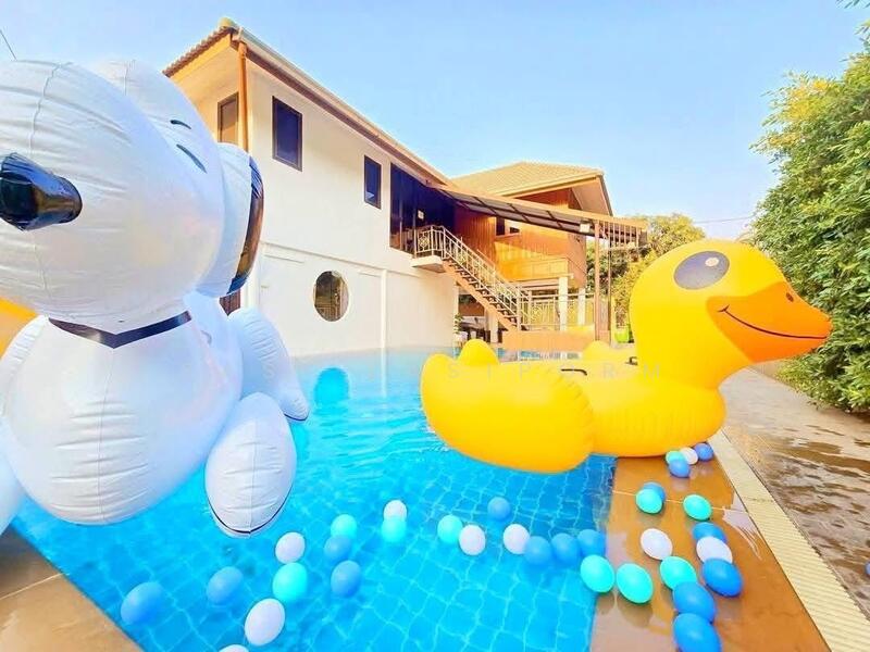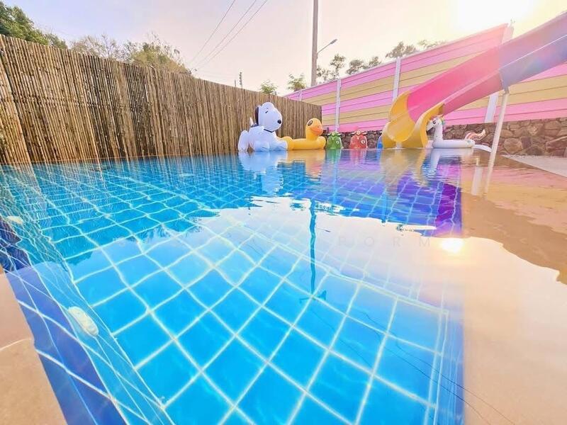 Step outside to your own tropical haven, complete with a private swimming pool, colorful inflatable floats, and a water slide for all-day enjoyment. Enjoy evenings with friends in the karaoke room, lit with playful disco lights, or unwind with a game of pool in the entertainment area.