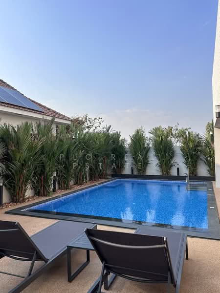 The villa sits on 137 sq.wah of land and offers 550 sq.m of usable space across a thoughtfully designed layout. In addition, the home features 5 bedrooms and 6 bathrooms, including bathtubs and a jacuzzi for enhanced relaxation. Furthermore, the property includes a dedicated home office, a private sauna, and a spacious second-floor balcony. The European kitchen supports modern living, while the solar energy system improves efficiency and sustainability. Consequently, this residence combines luxury features with practical functionality.