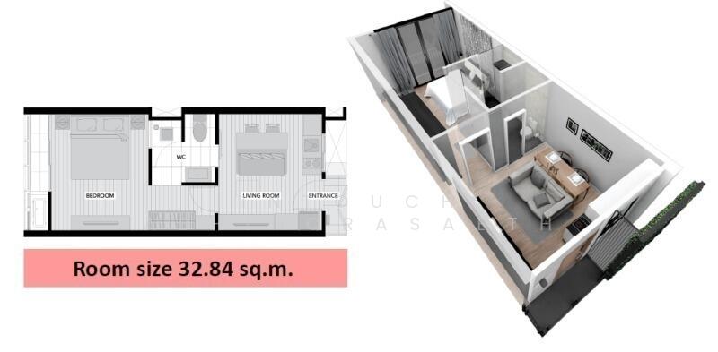 1 bedroom, 1 bathroom condo for rent with a floorsize of 33 squaremeters, located on the 30th floor, at A Space Asoke-Ratchada