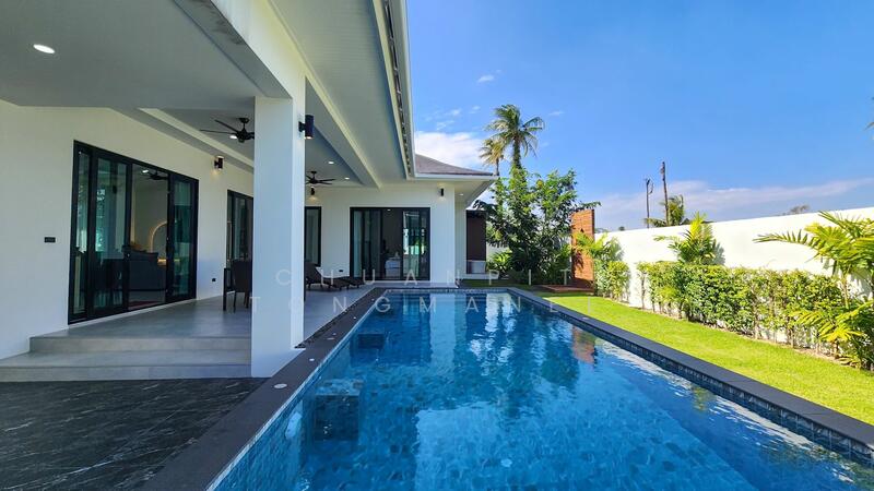 Pool Villa for sale at Aileen Hua Hin Soi 70 modern a spacious living area. Open-plan design and the use of high quality materials and personally designed and decorated Oriental furnishings make this home a very special property. Set on a generous land plot 400 sqm (100 sqwah.) with living area 180 sq.m, 3 bedrooms and 3 bathrooms. The perfect place to enjoy outdoor living at its best. Fully furnished. European connect to open style living area. Salt system swimming pool. Tropical landscaped Gardens. Covered Carport with storage. Freehold. maintenance charge 3,000 Baht per month.