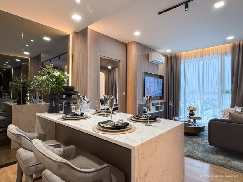 Located on the 4th floor, the 79.75 sq.m. unit offers a stunning Aqua Park view from the private balcony, creating a refreshing resort-like atmosphere. The interior features a modern, bright design with an open layout that lets in plenty of natural light.