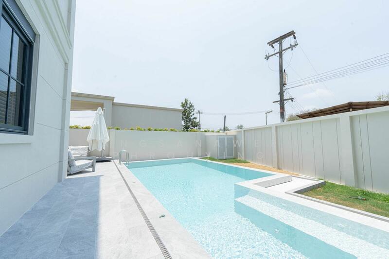 Don’t miss this Beautiful house!! A large luxury detached house in Neo Classical style with 4 bedrooms, 5 bathrooms, 2 living rooms, usable area of more than 290 square meters on a large land area, starting at 112 square wah, starting price only 19.9 million baht. Located on the prime area, convenience to travel close to Highway 36 and top International School in Pattaya.