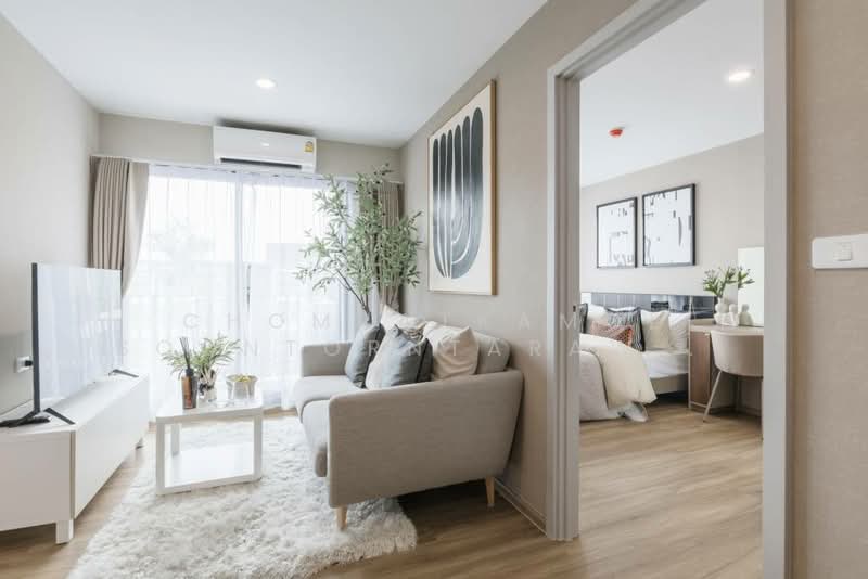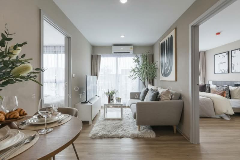 Elegant 2-Bedroom Condo in ARLO Sukhumvit 105 Located in the vibrant area of Bangna, this modern condo in the exclusive ARLO Sukhumvit 105-Lasalle project offers a chic urban lifestyle. Situated on the fifth floor of an eight-story building, it provides a serene escape amidst the bustling city. Interior Features Size: 43.56 sqm Bedrooms: 2 Bathrooms: 2 Ownership: Freehold The interior boasts a modern aesthetic with a neutral color palette, perfect for those who appreciate understated elegance. The bedrooms feature large windows that allow natural light to flood the space, enhancing the airy ambiance. Each bedroom is equipped with stylish decor, including a queen-sized bed, nightstand with lamp, and captivating wall art. The open-plan living area is designed for both comfort and style, featuring wooden flooring, a cozy gray sofa, and contemporary furnishings. Large windows ensure ample sunlight, while the dining space is perfect for entertaining guests. The kitchen, with its compact design and stainless steel appliances, offers both functionality and modern appeal. The bathrooms are fitted with glass shower enclosures, modern vanities, and high-quality fixtures, adding to the property's refined charm. Additional Amenities Being part of a new development and having a total of 581 units, residents can enjoy a sense of community while also benefiting from the privacy of condo living.