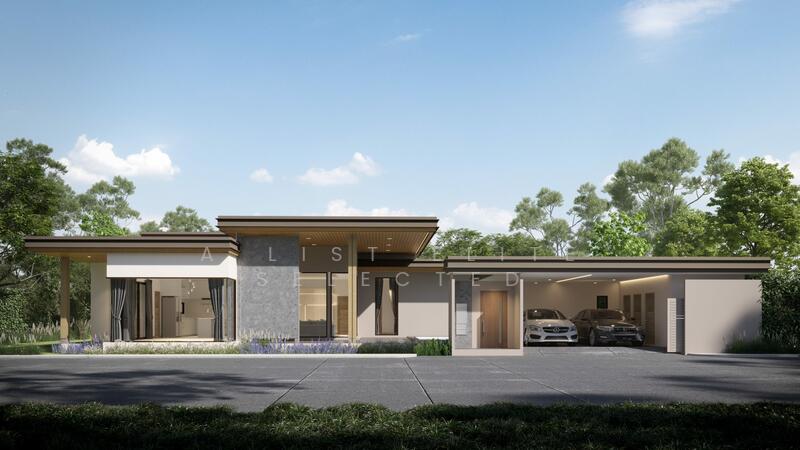 The Ascent Pattaya is a premium modern tropical villa development located in the tranquil Huai Yai area. This villa unit spans 358 sq.m. and includes 4 spacious bedrooms, 4 elegantly designed bathrooms, a combined open-plan living and dining area, Western kitchen plus Thai kitchen, a private swimming pool, and parking for 2 cars. The design focuses on blending indoor and outdoor living, with high ceilings, natural light, lush garden surroundings, and high-quality finishes for luxury living in Pattaya.