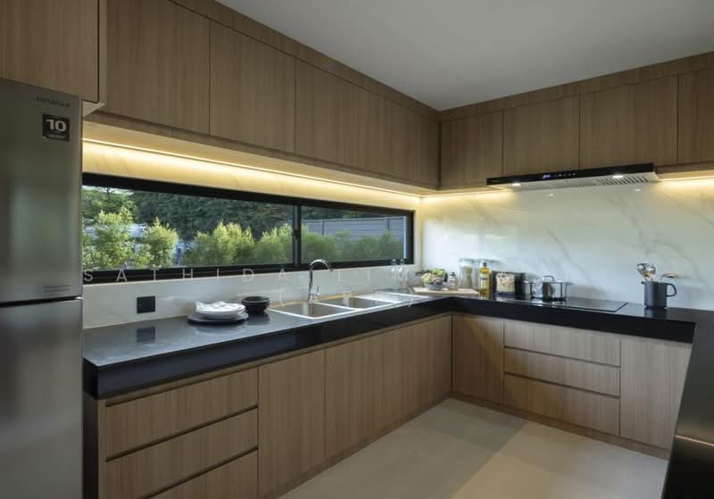 Welcome to this stunning residence offering a spacious and thoughtfully designed layout, with an approximate area of 358 square meters. Perfect for families or those who enjoy comfortable living and entertaining, this home combines modern convenience with functional elegance. The property features four generously sized bedrooms, each providing a peaceful retreat with ample space and natural light. With four well-appointed bathrooms, comfort and privacy are ensured for every member of the household and visiting guests. At the heart of the home is a warm and inviting dining area, ideal for family meals or entertaining friends. The main kitchen is designed with both style and practicality in mind, complemented by a separate Thai kitchen, ideal for preparing aromatic dishes without disrupting the main living areas. Step outside to enjoy your own private swimming pool, offering a serene space for relaxation, recreation, or social gatherings. The surrounding area provides a perfect balance of indoor and outdoor living. For added convenience, the home includes two private parking spaces, offering secure and easy access at all times. This property is ideal for those seeking a blend of space, comfort, and functionality, all within a beautifully crafted home.