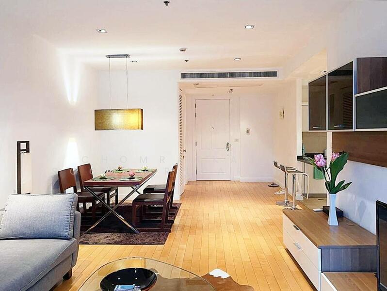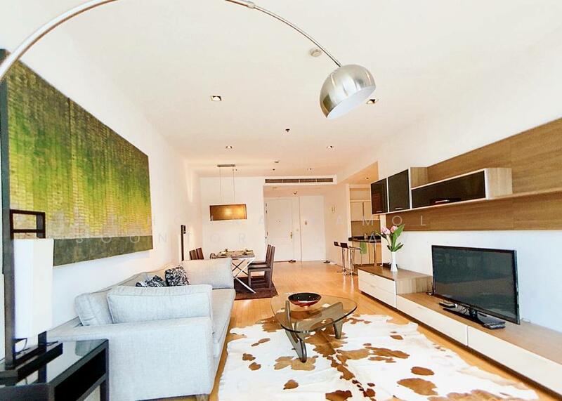 This 120 square meter two bedroom, two bathroom condo on the 20th floor of Athenee Residence in Lumpini, Pathum Wan, offers a bright contemporary city home. The residence is fully furnished and presented in a clean modern style with generous natural light and open-plan living.