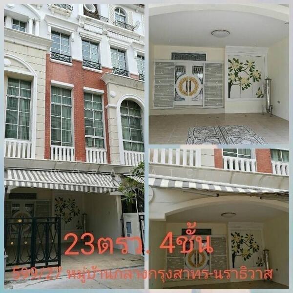 บ้านกลางกรุง สาทร-นราธิวาส (Baan Klang Krung Sathorn-Narathiwas) โครงการทาวน์โฮม 4 ชั้น ระดับ High Class บนทำเลติดถนนนนทรี และใกล้กับรถไฟฟ้า BTS สถานีสุรศักดิ์ประมาณ 5 กิโลเมตร เป็นผลงานการพัฒนาโครงการจากบริษัท เอพี (ไทยแลนด์) จำกัด (มหาชน)โครงการนี้มีเนื้อที่ทั้งหมดประมาณ 27 ไร่ 2 งาน 79 ตารางวา จำนวน 150 ยูนิต มีพื้นที่ใช้สอยเริ่มต้น 300 ตารางเมตร ขนาด 4 ห้องนอน 5 ห้องน้ำ พร้อมสิ่งอำนวยความสะดวก เช่น คลับเฮ้าส์, สระว่ายน้ำ, ห้องออกกำลังกาย และระบบรักษาความปลอดภัยได้มาตรฐาน โดยโครงการก่อสร้างแล้วเสร็จในปี 2554 และมีลักษณะการถือครองแบบขายขาด ตัวโครงการแวดล้อมไปด้วยแหล่งอำนวยความสะดวก โดยในรัศมีไม่เกิน 6 กิโลเมตรรอบโครงการ จะพบสถานที่น่าสนใจ เช่น โลตัส พระราม 3, เซ็นทรัลพลาซา พระราม 3, เทอร์มินอล 21 พระราม 3, โรงเรียนสารสาสน์พิทยา, โรงเรียนเตรียมอุดมศึกษาพัฒนาการ ยานนาเวศ, โรงพยาบาลเซนต์หลุยส์ และโรงพยาบาลเจริญกรุงประชารักษ์ เป็นต้น นอกจากนี้ผู้อยู่อาศัยยังสามารถเลือกการเดินทางเชื่อมต่อจากถนนหลักหน้าโครงการไปสู่ถนนสายสำคัญใกล้เคียงได้ 4 เส้นทาง คือ ถนนรัชดาภิเษก ห่างจากโครงการประมาณ 700 เมตร, ถนนสาธุประดิษฐ์ ห่างจากโครงการประมาณ 800 เมตร, ถนนพระราม 3 ห่างจากโครงการประมาณ 1.2 กิโลเมตร และถนนยานนาวา ห่างจากโครงการประมาณ 1.5 กิโลเมตร และห่างจากโครงการไปเพียง 1.5 กิโลเมตร จะพบทางพิเศษเฉลิมมหานครเปิดให้ใช้บริการ เพื่อการเดินทางไปลงที่เขตคลองเตย, เขตปทุมวัน, CBD ราชเทวี, CBD พญาไท, เขตห้วยขวาง และเขตจตุจักร จากนั้นเส้นทางจะเชื่อมต่อกับทางยกระดับอุตราภิมุข เพื่อไปลงที่เขตหลักสี่, เขตดอนเมือง, เขตรังสิต และจังหวัดปทุมธานี บ้านกลางกรุง สาทร-นราธิวาส (Baan Klang Krung Sathorn-Narathiwas) ใช้สไตล์ Modern Classic สำหรับการออกแบบโครงการ และทาวน์โฮม โดยความสวยงามของสไตล์นี้ เน้นความหรูหราแบบยุโรปด้วยการจัดให้ทุกตำแหน่งของประตูและหน้าต่างเว้นจังหวะกันอย่างสม่ำเสมอ พร้อมตกแต่งด้วยขอบปูนปั้นและซุ้มทรงโค้ง พร้อมความสูง 4 ชั้น ที่รองรับได้มากถึง 4 ห้องนอน และด้วยโครงการนี้ได้ปิดการขายไปนานแล้ว ทำให้ในปัจจุบันไม่มีการประกาศขายจากเจ้าของโครงการ จะมีเฉพาะการประกาศขายจากเจ้าของบ้าน หรือตัวแทนโดยตรงเท่านั้น ซึ่งแต่ละยูนิตที่ได้ประกาศขายล้วนตกแต่ง และรีโนเวทใหม่มาอย่างน่าใช้งาน ผู้ซื้อสามารถนัดเข้าเยี่ยมชมสถานที่จริง บ้านของจริง และพื้นที่ส่วนกลางของจริงก่อนตัดสินใจซื้อได้ โดยแบบบ้านเดิมในโครงการมีให้เลือกดังต่อไปนี้ ทาวน์โฮม 4 ชั้น พื้นที่ใช้สอยเริ่มต้น 300 ตารางเมตร ขนาด 4 ห้องนอน 5 ห้องน้ำ และ 1 ที่