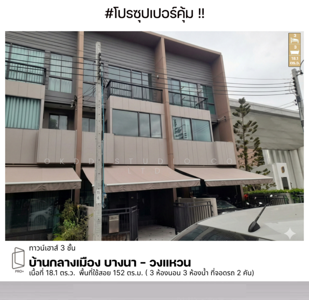 บ้านกลางเมือง บางนา-วงแหวน ทาวน์โฮม 3 ชั้น