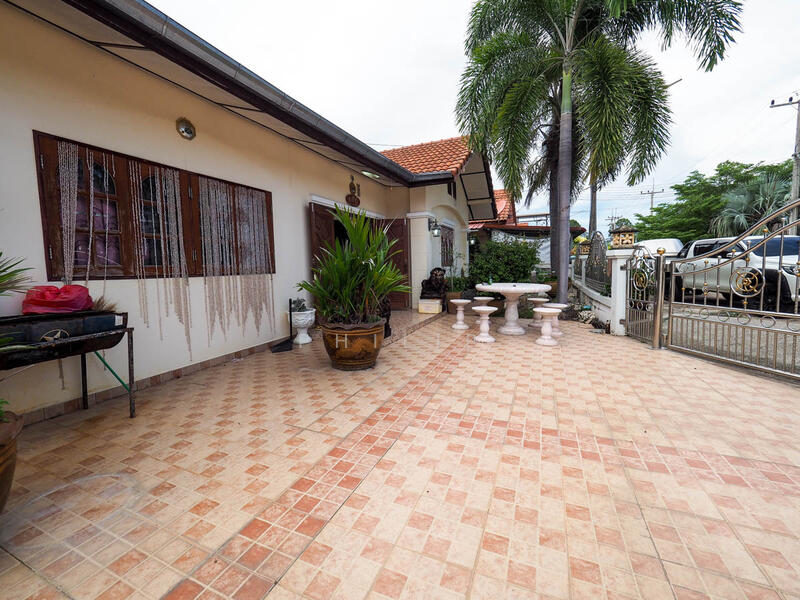 This spacious single-story house is now available for sale at Baan Koon Suk. The property features 3 bedrooms and 2 bathrooms, offering 200 sq.m. of living area on a generous 368 sq.m. land plot. The home comes fully furnished and is equipped with a kitchen, cooking hob, microwave, fridge, TV, air-conditioning, and a washing machine. The property is currently registered under a Thai Company name, allowing for a convenient ownership transfer.