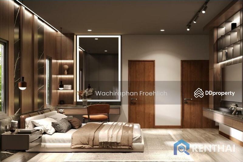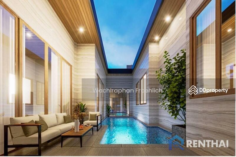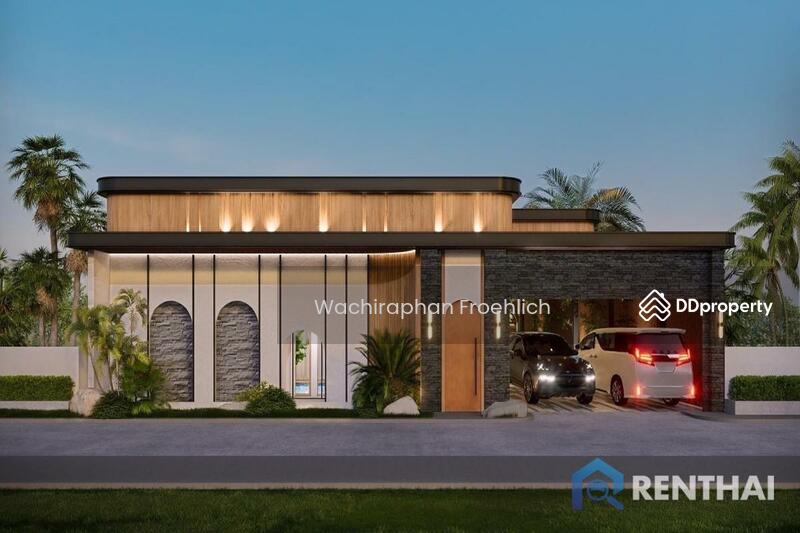 Open for reservations: Single-storey pool villa house high ceilings, Modern style, 4 bedrooms, 5 bathrooms, fully furnished. The house is open for reservation at a pre-sale price. Down payment installments according to the construction period no interest. The location is near Chak Nok Reservoir Public Park and only 10 minutes drive to Jomtien Beach.
