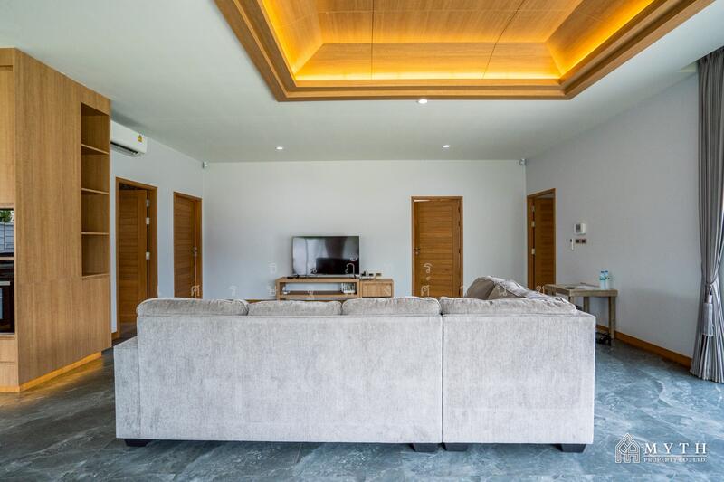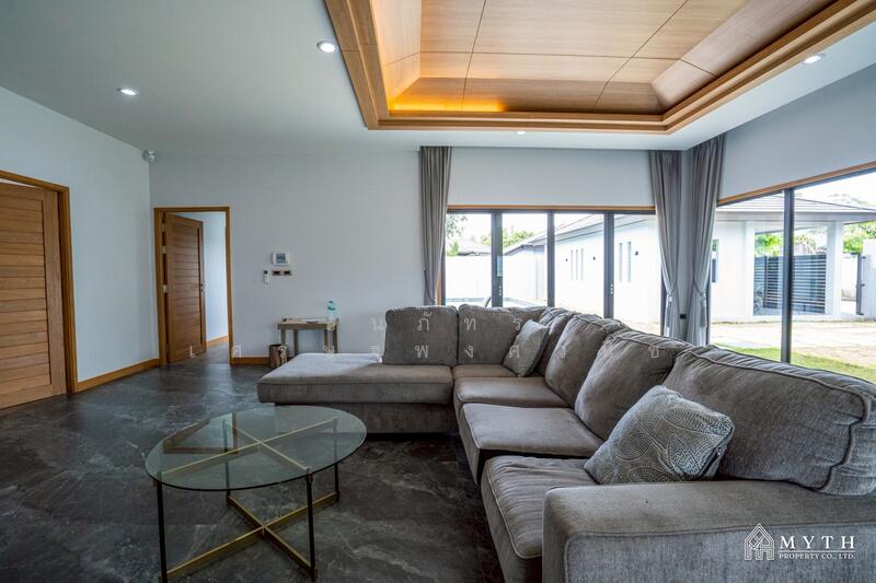 Modern Single House for Rent in Pattaya 6 Beautiful modern-style home with a spacious living area.Features a private swimming pool and lush private garden, offering high privacy and a peaceful atmosphere.Ideal for families or those seeking a quality home in a prime location.