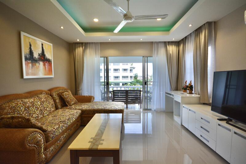 The unit comes fully furnished and is ready for immediate use. A fully equipped European style kitchen supports daily cooking and practical living. The living and dining areas connect smoothly and provide ample space for everyday routines. The bathroom features a modern design and includes a jacuzzi bathtub, adding comfort and functionality. Air conditioning ensures year-round comfort. Two private balconies extend the living space and provide outdoor areas to enjoy pool views and fresh air.