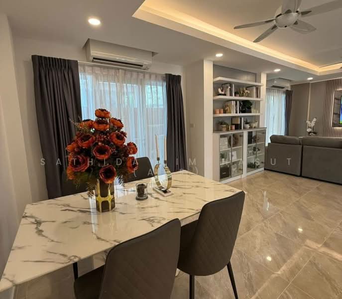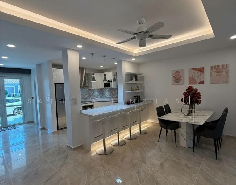 Available now! A beautifully renovated 2-story detached house in the popular Baan Suan Lalana project, Pattaya-Jomtien. This cozy modern home features a bright and airy grey-white color scheme, offering a warm and relaxing atmosphere.