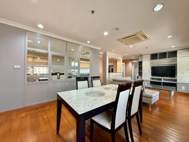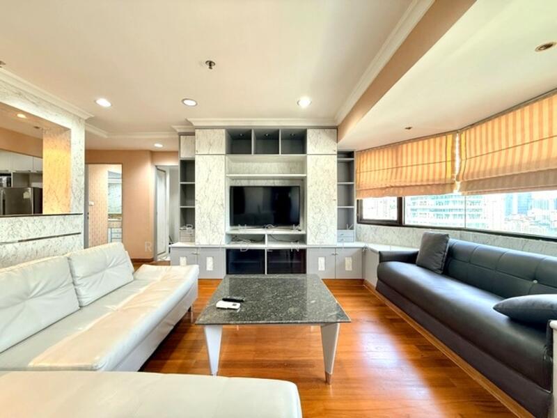 This spacious 2 bedroom condo in Baan Suanpetch offers 129 square meters of well-planned living space on a high floor, creating an airy and welcoming environment. The unit is fully furnished with a blend of modern and comfortable décor, featuring warm tones, quality materials, and thoughtfully arranged pieces that contribute to a relaxed and inviting atmosphere. High-quality finishes and stylish furnishings enhance the overall aesthetic, making the space equally well suited for quiet evenings at home or hosting guests.