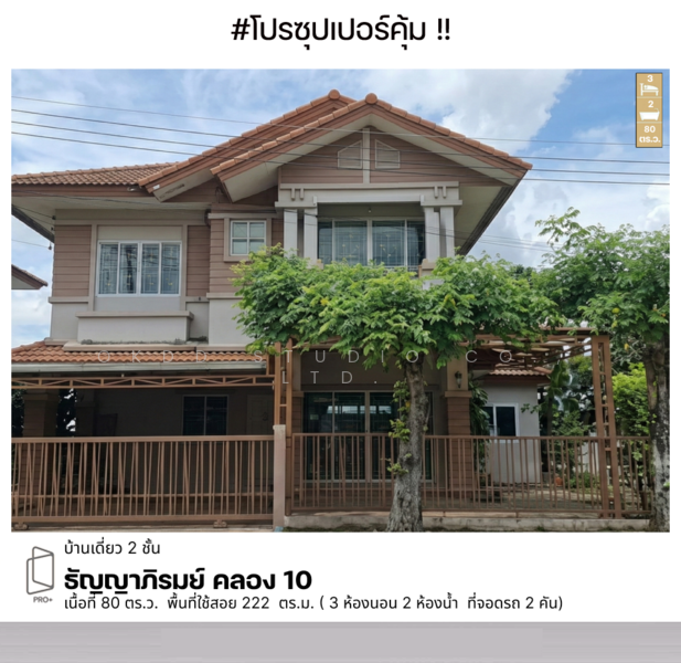 บ้านเดี่ยว 2 ชั้น หลังใหญ่ ธัญญาภิรมย์ รังสิต-คลอง 10 ขนาด 3 ห้องนอน